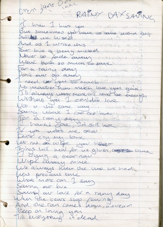 Rainy Day Saving – Written Monday 31st October 1994 (Aged 19)