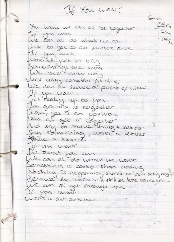 If You Want – Written Sunday 30th October 1994 (Aged 19)