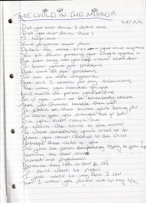The Child in The Mirror – Written Sunday 26th February 1995 (Aged 20)