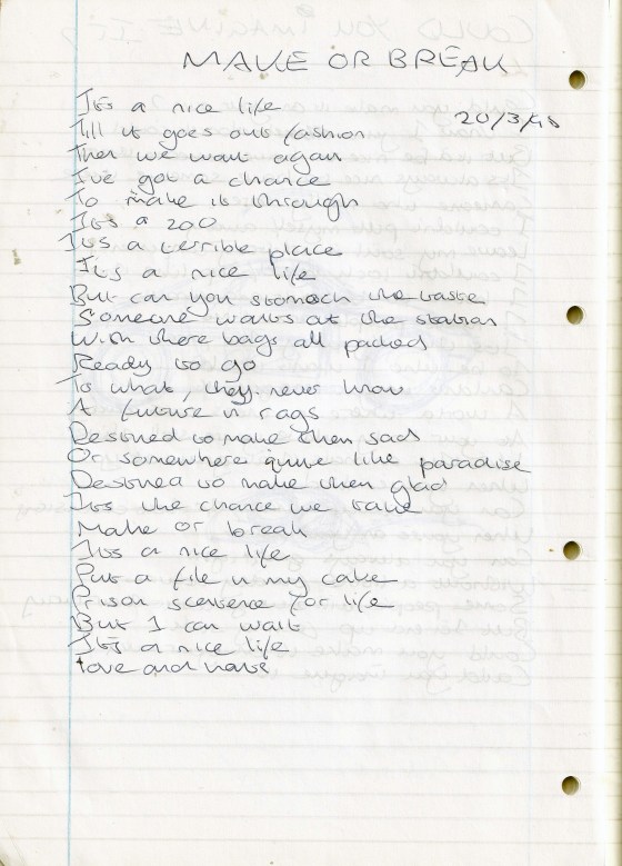 Make or Break – Written Monday 20th March 1995 (Aged 20)
