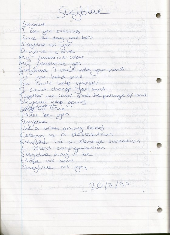Sky Blue – Written Monday 20th March 1995 (Aged 20)
