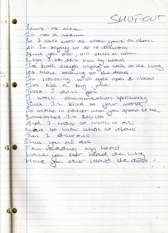 Shut Out – Written Between February and June 1995 (Aged 20)