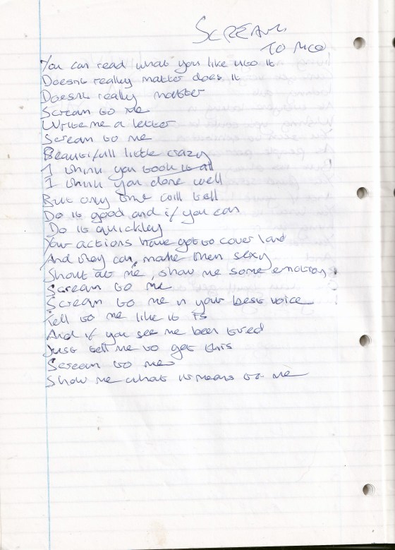 Scream To Me – Written Between February and June 1995 (Aged 20)