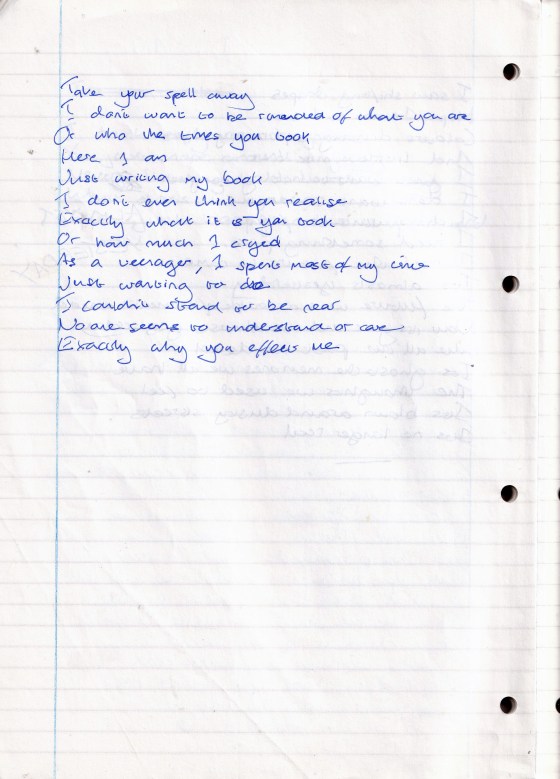 Take Your Spell Away – Written Between February and June 1995 (Aged 20)
