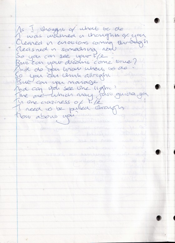 Washed in Thoughts of You – Written Between February and June 1995 (Aged 20)