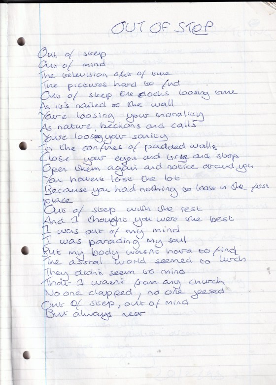 Out of Step – Written Monday 20th February 1995 (Aged 19)