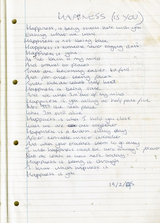 Happiness (Is You) – Written Sunday 19th February 1995 (Aged 19)