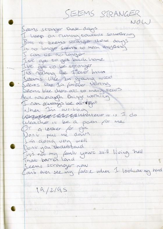Seems Stranger Now – Written Sunday 19th February 1995 (Aged 19)