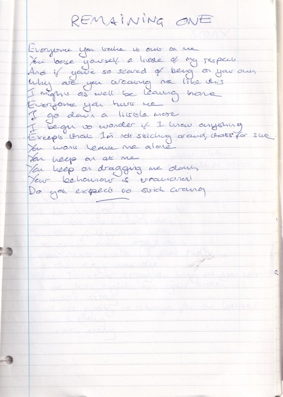Remaining One every time you take it out on me you lose a little of my respectand you are scared … More