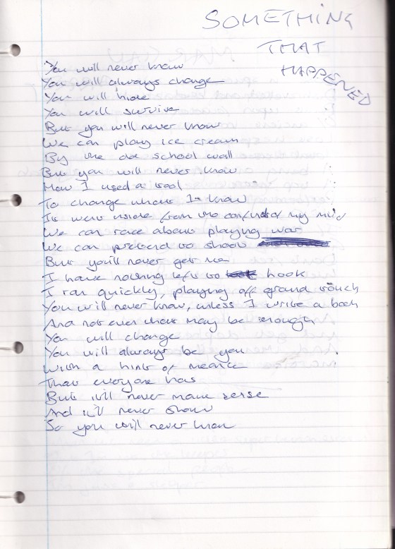 Something That Happened you will never knowyou will always change you will hideyou will survive but you will never knowwe … More