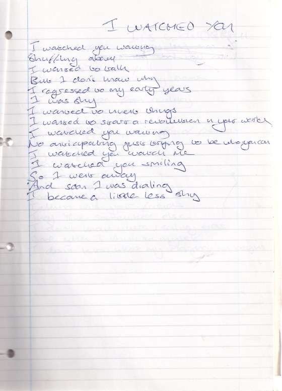 I Watched You i watched you waiting shuffling about i wanted to talk but i do not know why i … More
