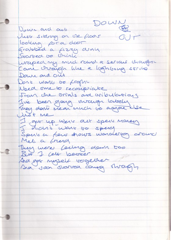 Down and Outdown and outjust sitting on the floorlooking for a doorgrabbed a fizzy drinkstarted to think wrapped my mind … More