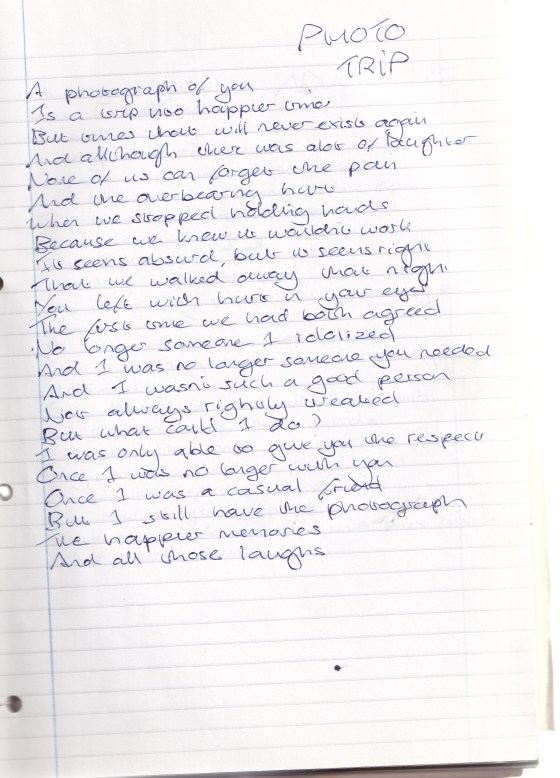 Photo Trip a photograph of you is a trip into happier times but times that will never exist again and … More