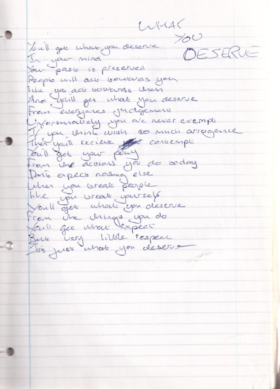 What You Deserve you will what you deserve in your mindthe past is preserved people will act towards youlike you … More