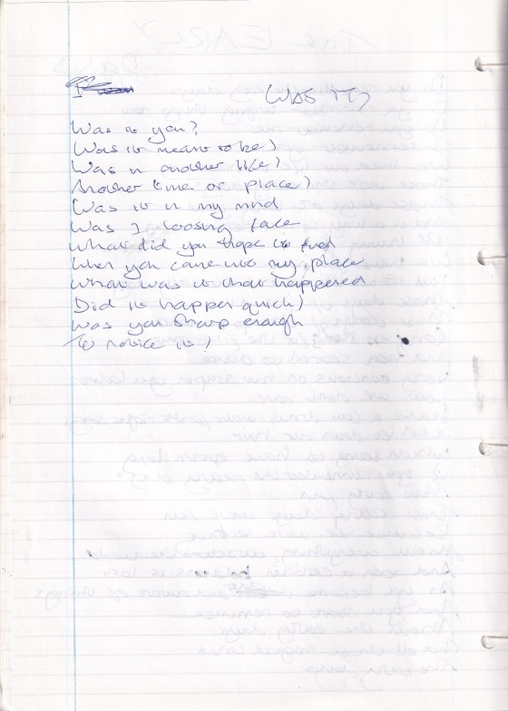 Was It? Was it you?was it mean to be?was it in another life?another time or place?was it in my mind?was … More