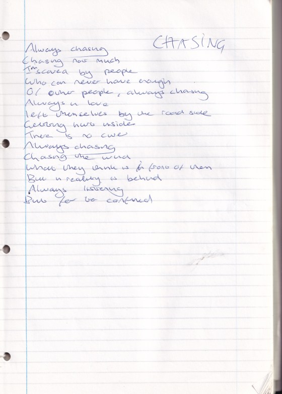 Chasing always chasing chasing not much i am scared by people who can never have enough of other people, always … More