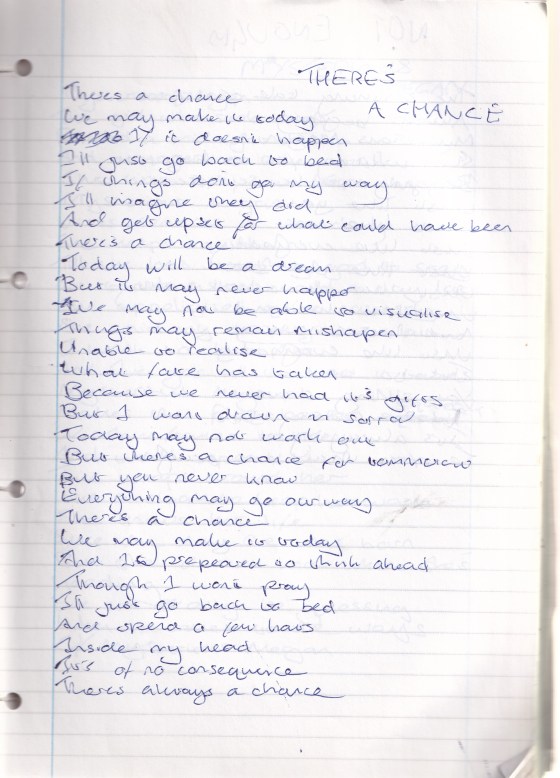 There’s a Chance there’s a chancewe may make it today if it doesn’t happeni will just go back to bedif … More