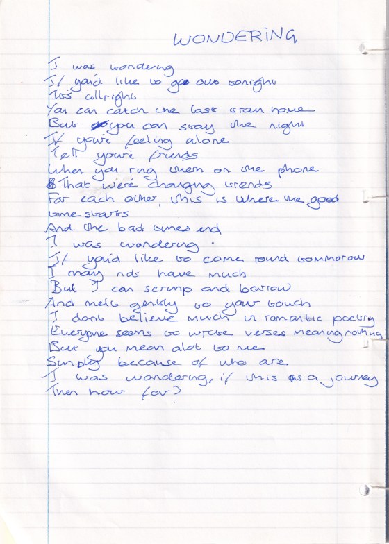 Wondering i was wonderingif you would like to go out tonight its alright you can catch the last train home … More