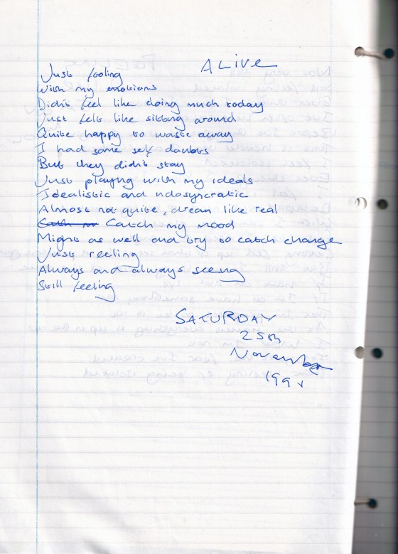 Feeling Like I Am On My Own – Written November 1995 (Aged 20)