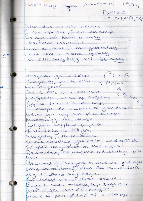 Does it Matter – Written Monday 13th November 1995 (Aged 20)