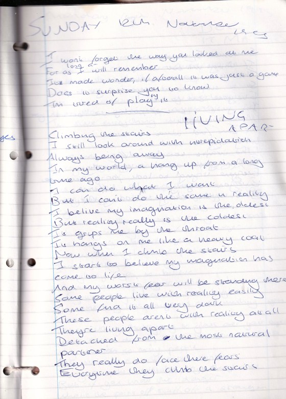 Living Apart – Written Sunday 12th November 1995 (Aged 20)