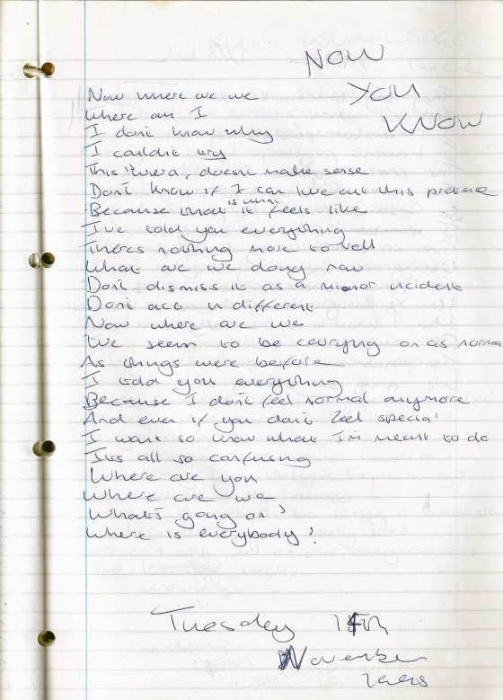Now You Know – Written Tuesday 14th November 1995 (aged 20)