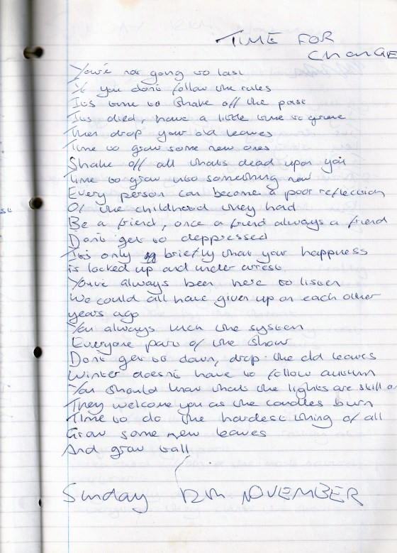 Time for Change – Written Sunday 12th November 1995 (Aged 20)