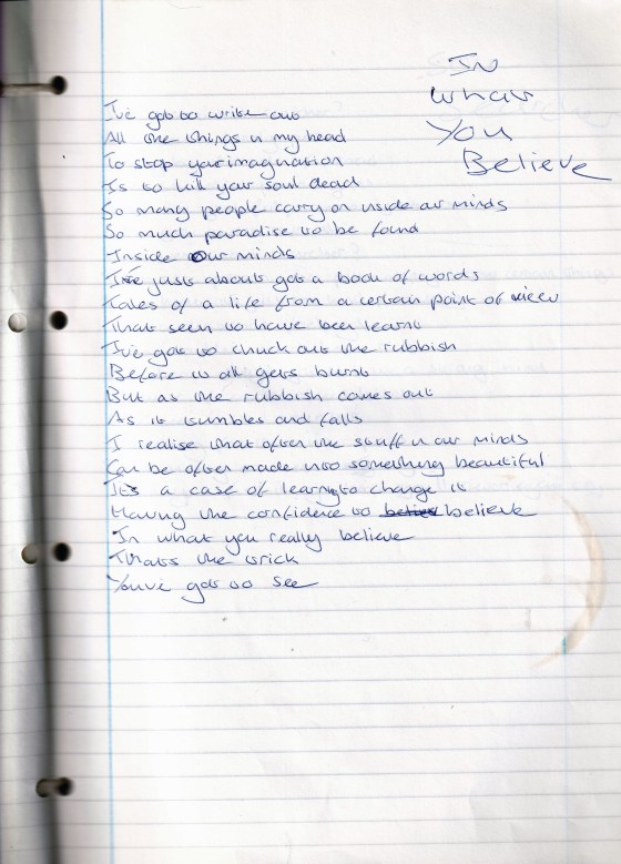 In What You Believe – Written Thursday 26th October 1995 (Aged 30)