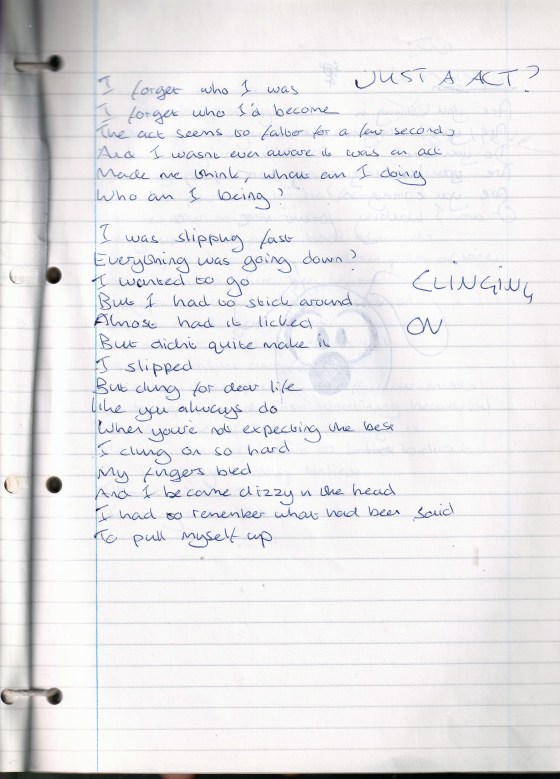 Clinging On – Written Thursday 26th October 1995 (Aged 20)