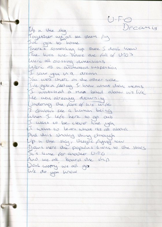 U.F.O Dreams – Written Thursday 26th October 1995 (Aged 20)