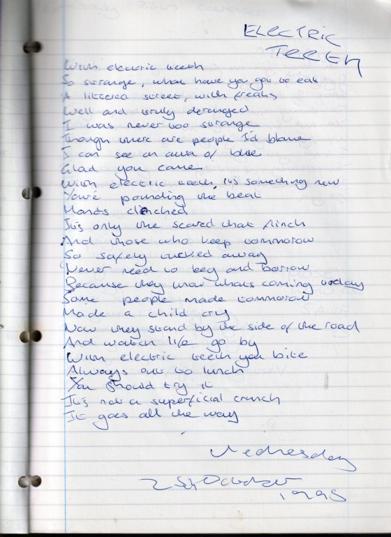 Electric Teeth – Written Wednesday 25th October 1995 (Aged 20)
