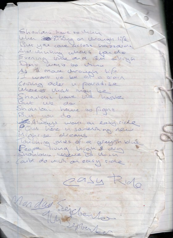 Easy Ride – Written Monday 8th September 1996 (Aged 21)