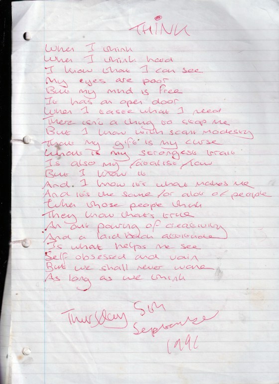 Think – Written Thursday 5th September 1996 (Aged 21)
