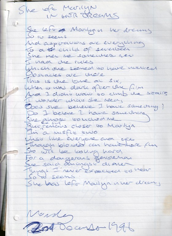 She Left Marilyn in Her Dreams – Monday 2nd December 1996