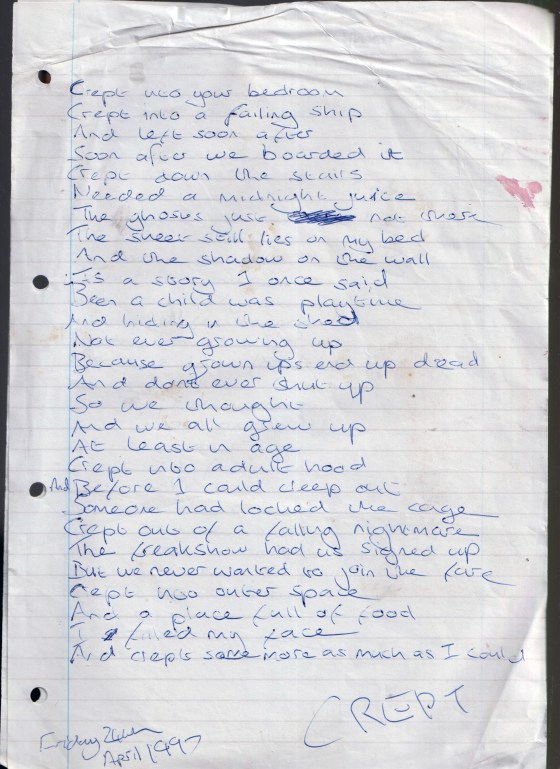 Crept – Written Friday 24th April 1997 (Aged 22)