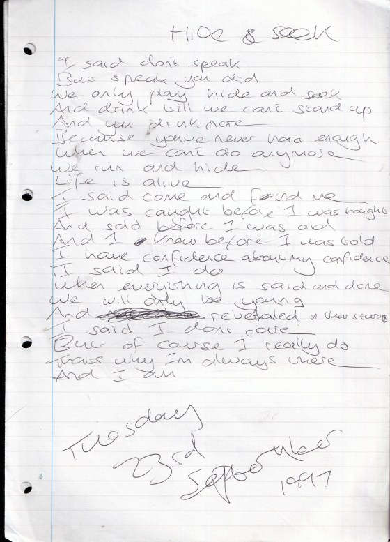 Hide and Seek – Written Tuesday 23rd September 1997 (Aged 22)