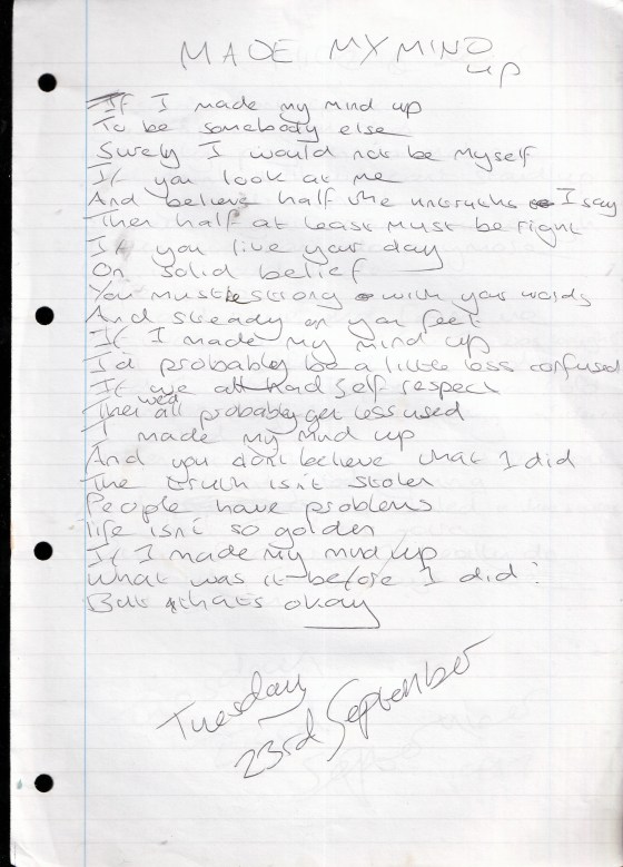 Made My Mind Up – Written Tuesday 23rd September 1997 (Aged 22)