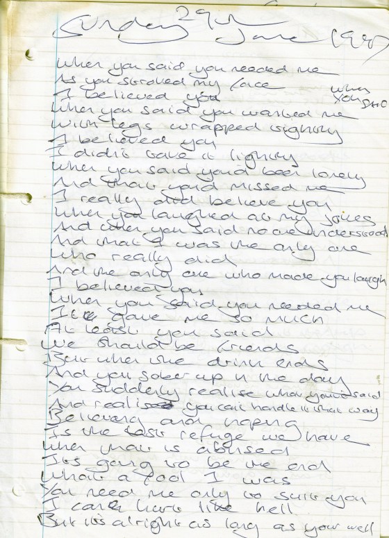 I Believed You – Written Sunday 29th June 1997 (Aged 22)