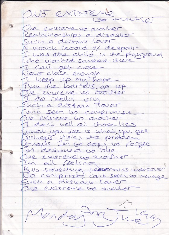 One Extreme To Another – Written Monday 30th June 1997 (Aged 22)