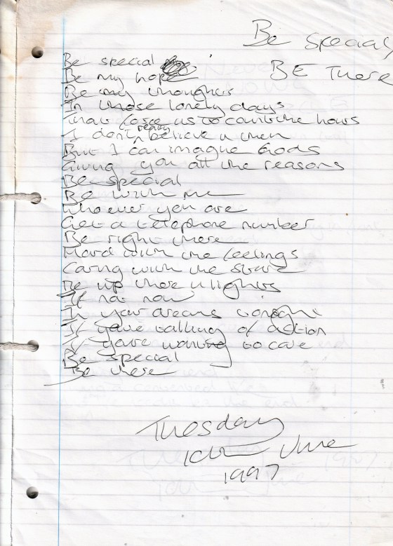 Be Special, Be There – Written Tuesday 10th June 1997 (Aged 22)