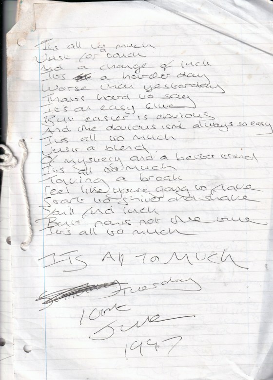 It’s All Too Much – Written Tuesday 10th June 1997 (Aged 22)