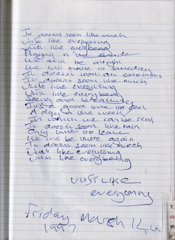 Just Like Everything – Written Friday 14th March 1997 (Aged 22)