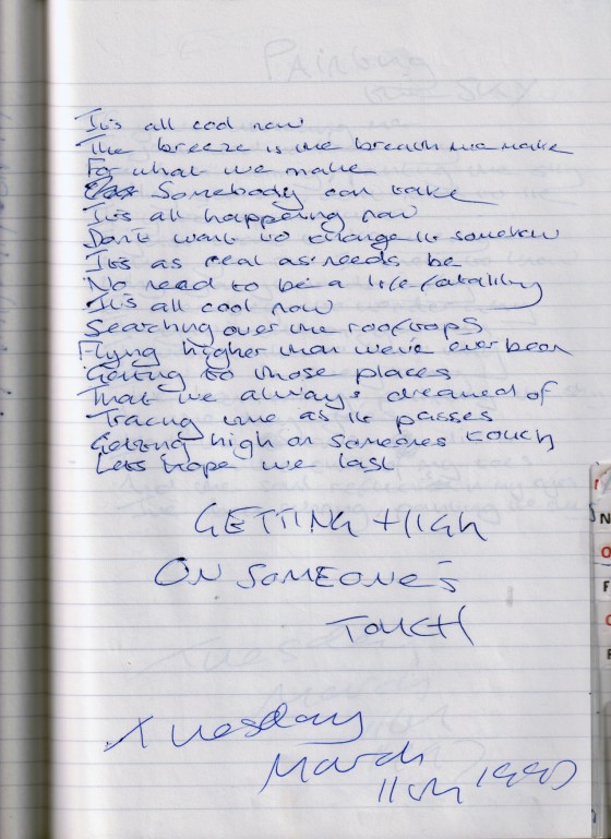 Getting High on Someone’s Touch – Written Tuesday 11th March 1997 (Aged 22)