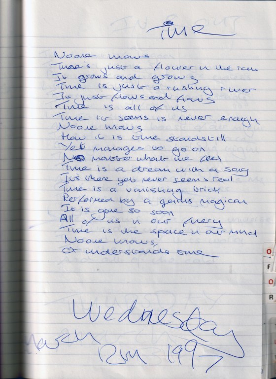 Time – Written Wednesday 12th March 1997 (Aged 22)