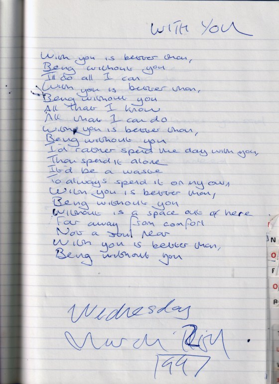 With You – Written Wednesday 12th March 1997 (Aged 22)