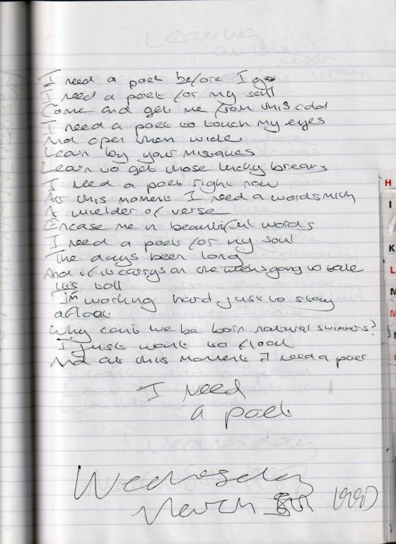 I Need a Poet – Written Wednesday March 5th 1997 (Aged 22)