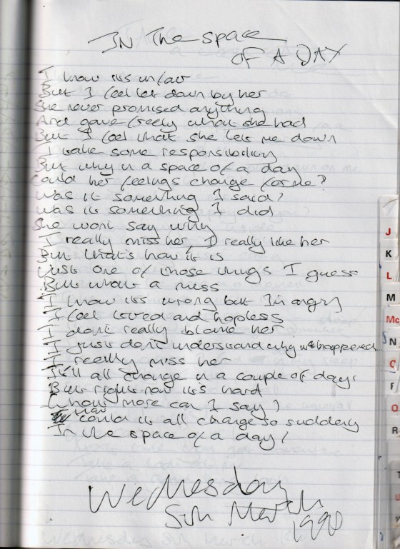 In the Space of the Day – Wednesday 5th March 1997 (Aged 22)