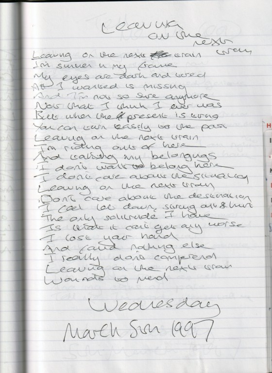 Leaving on the Next Train – Written Wednesday March 5th 1997 (Aged 22)