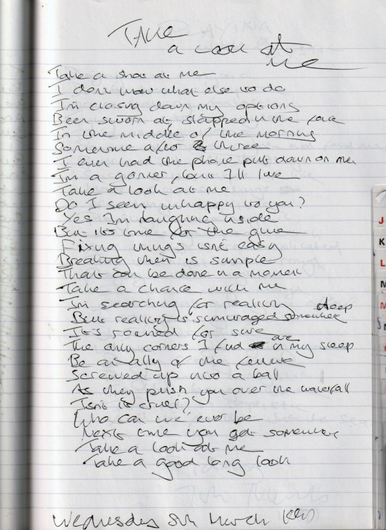 Tell Me I am Good – Written Wednesday 5th March 1997 (Aged 22)