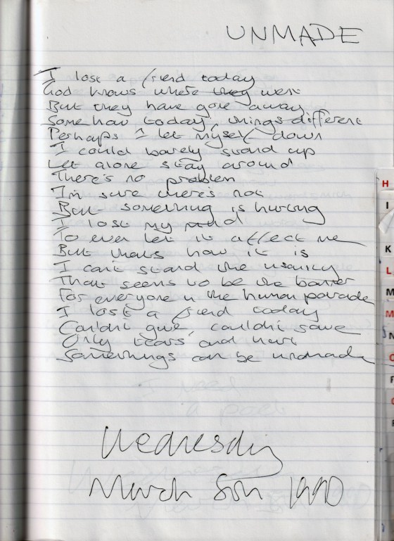 Unmade – Written Wednesday March 5th 1997 (Aged 22)